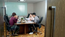 Kami menawarkan area yang fleksibel dan lengkap untuk rapat, acara, dan sesi kerja.